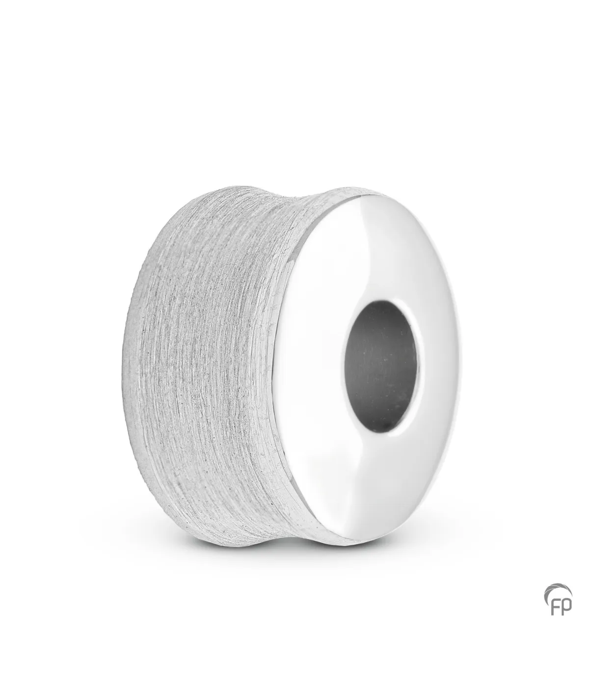 Gematteerde en deels glanzende 925 Sterling zilveren Memorial Bead. Bevat een holle ruimte voor een symbolische hoeveelheid as.