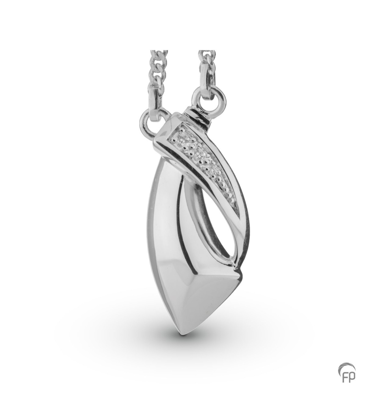 Glanzende 925 Sterling zilveren ashanger met zirkonia steentjes. Bevat een holle ruimte voor een symbolische hoeveelheid as.