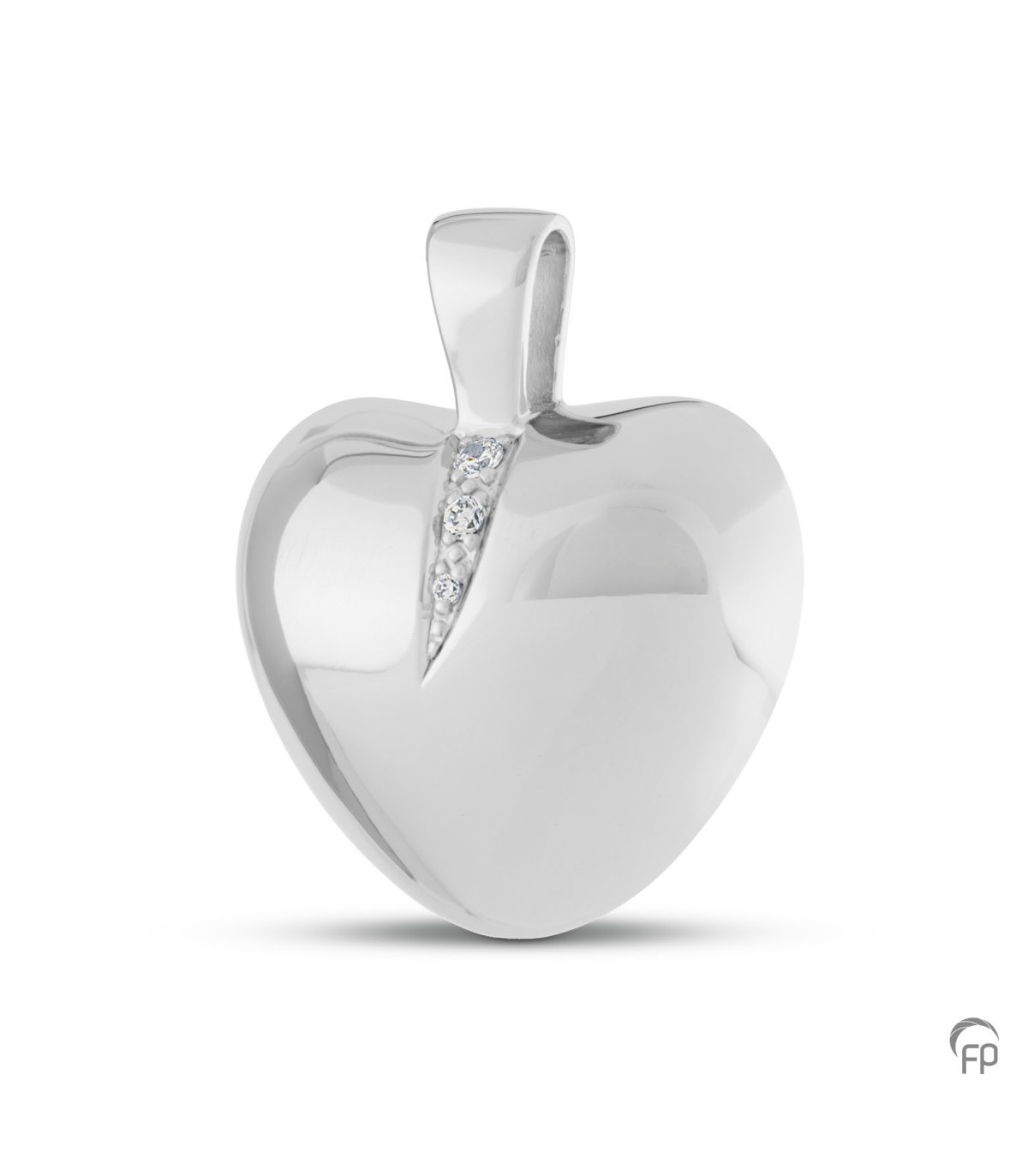 Glanzende 925 Sterling zilveren DUO ashanger met zirkonia steentjes. Bevat twee holle ruimtes voor een symbolische hoeveelheid as.