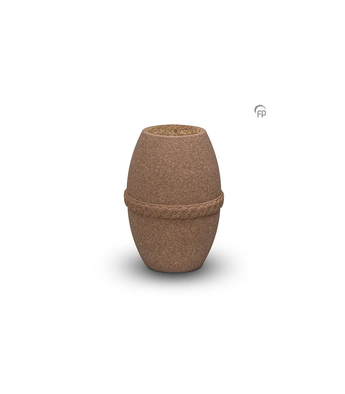 Deze handgemaakte urn van zand is geschikt voor plaatsing in de grond en water. Bevat lavendelzaadjes in de deksel.