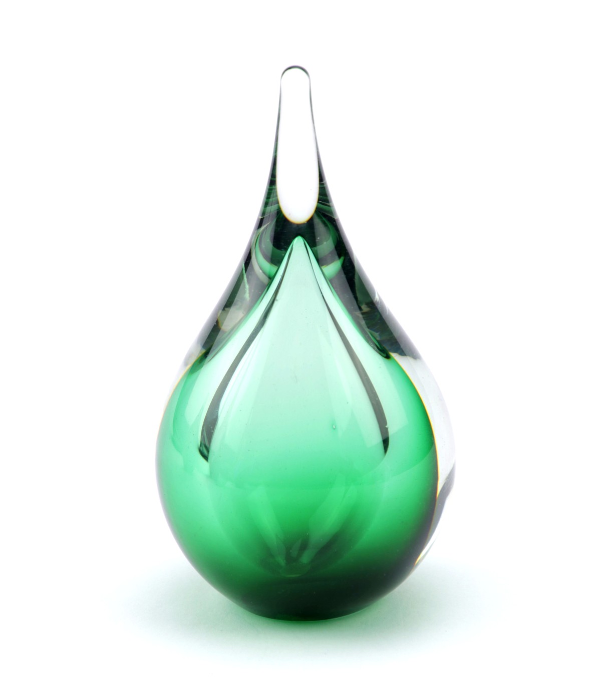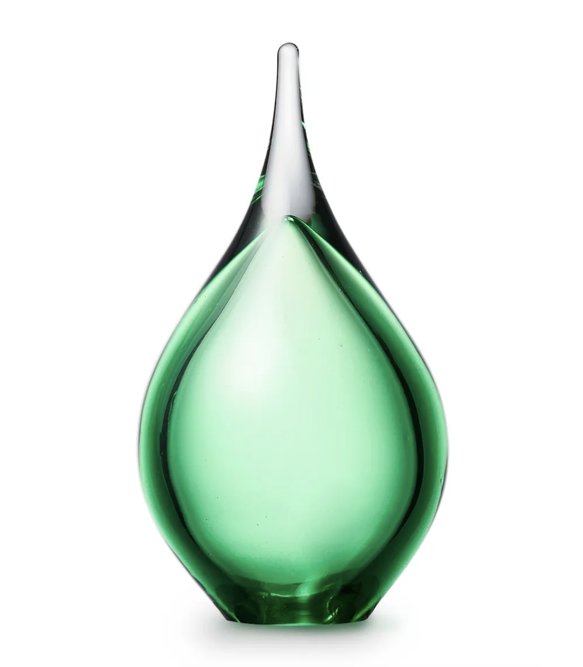 Deze mooie kristalglazen urn heeft de vorm van een sierlijke druppel met een krachtige groene kern. In de kern bevindt zich een holle ruimte waar een gedeelte van het as in bewaard kan worden. Dit as-reservoir wordt door middel van een zelf-hechtende sluitplaat afgesloten.