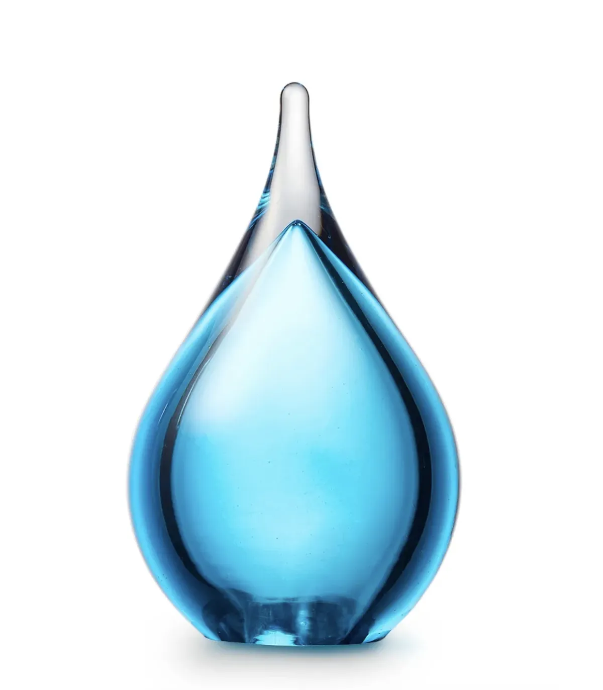 Deze mooie kristalglazen urn heeft de vorm van een sierlijke druppel met een krachtige lichtblauwe kern. In de kern bevindt zich een holle ruimte waar een gedeelte van het as in bewaard kan worden. Dit as-reservoir wordt door middel van een zelf-hechtende sluitplaat afgesloten.