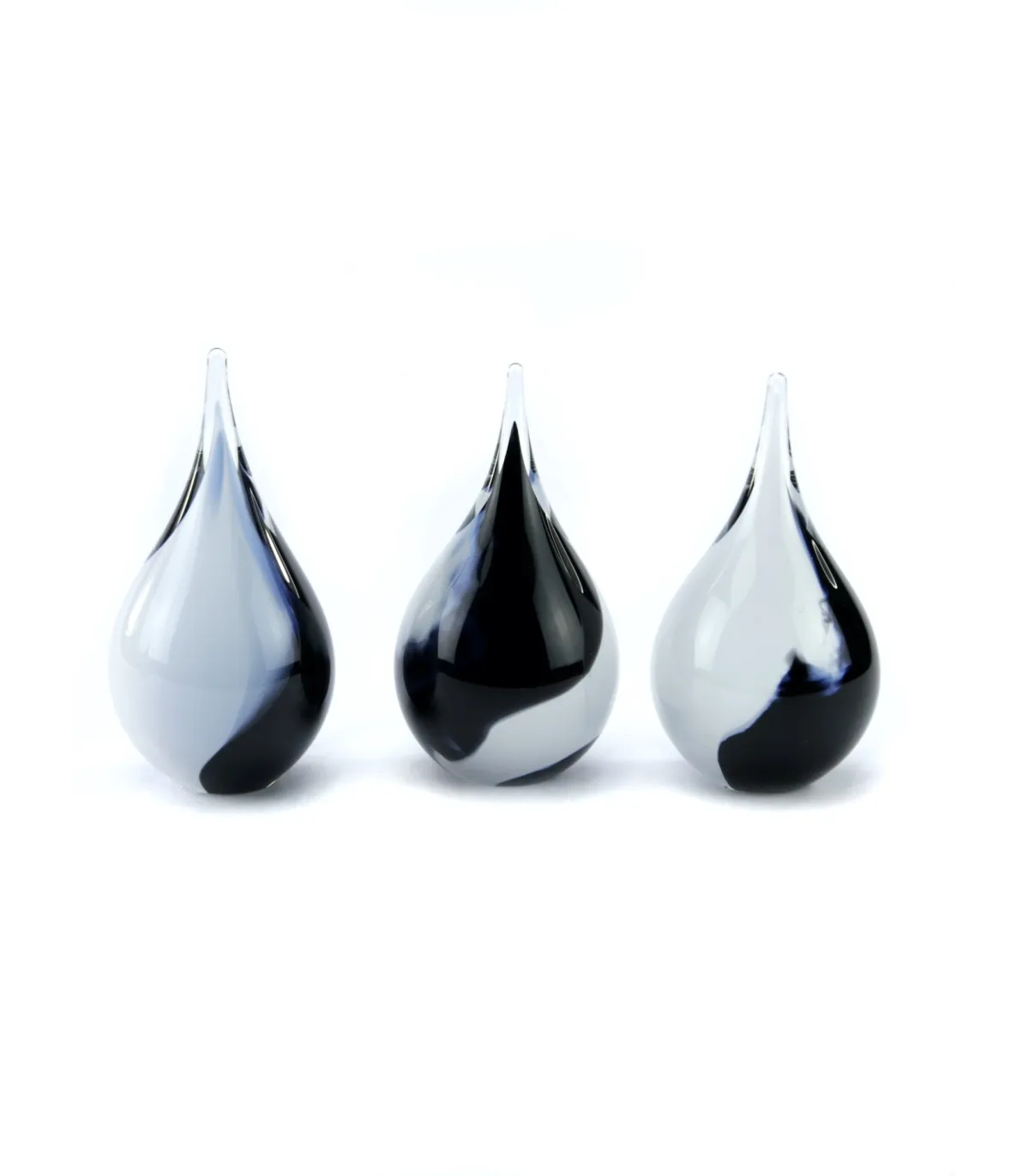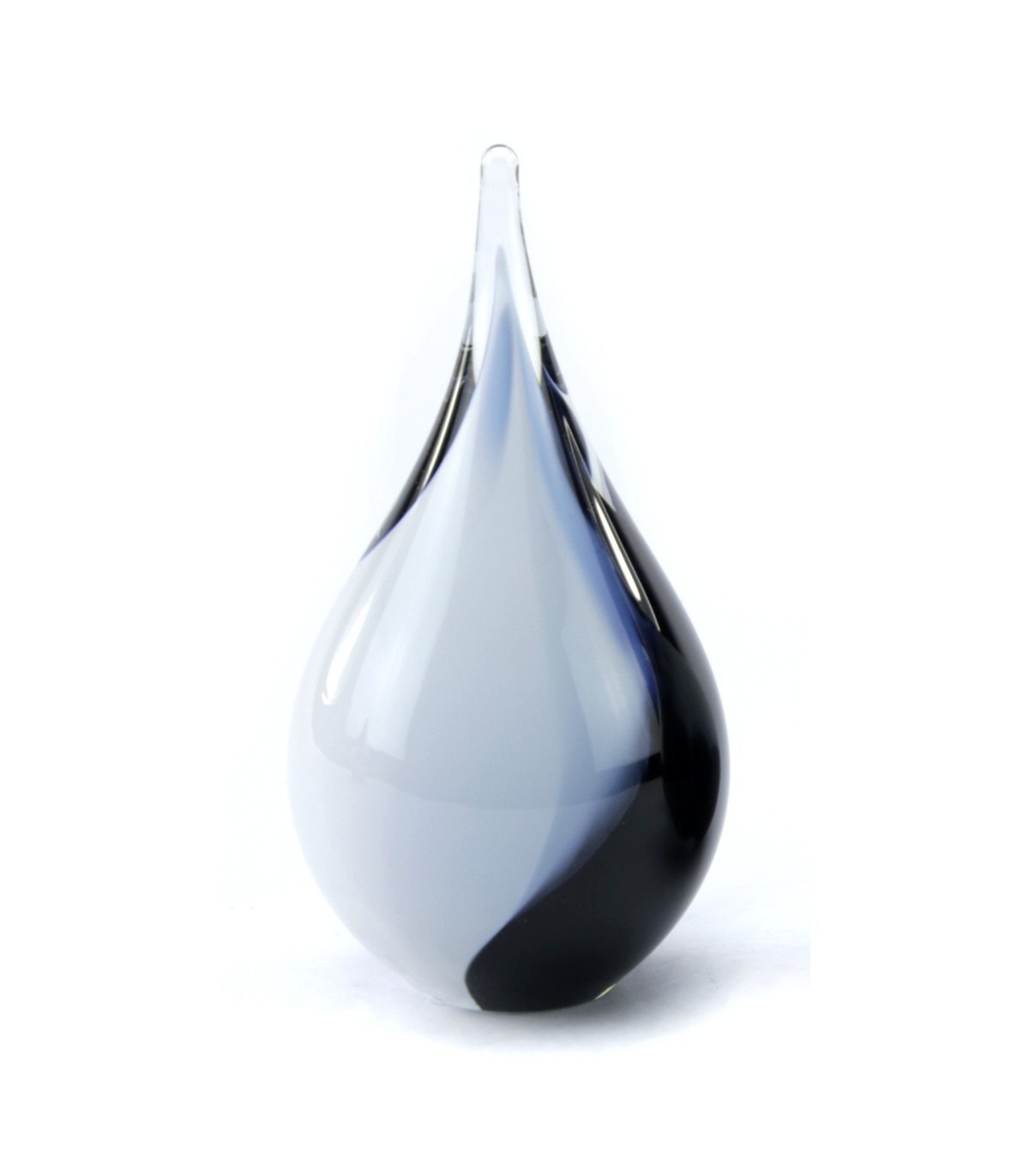 Deze mooie kristalglazen urn heeft de vorm van een sierlijke druppel met een krachtige zwart met witte kleur. In de kern bevindt zich een holle ruimte waar een gedeelte van het as in bewaard kan worden. Dit as-reservoir wordt door middel van een zelf-hechtende sluitplaat afgesloten.