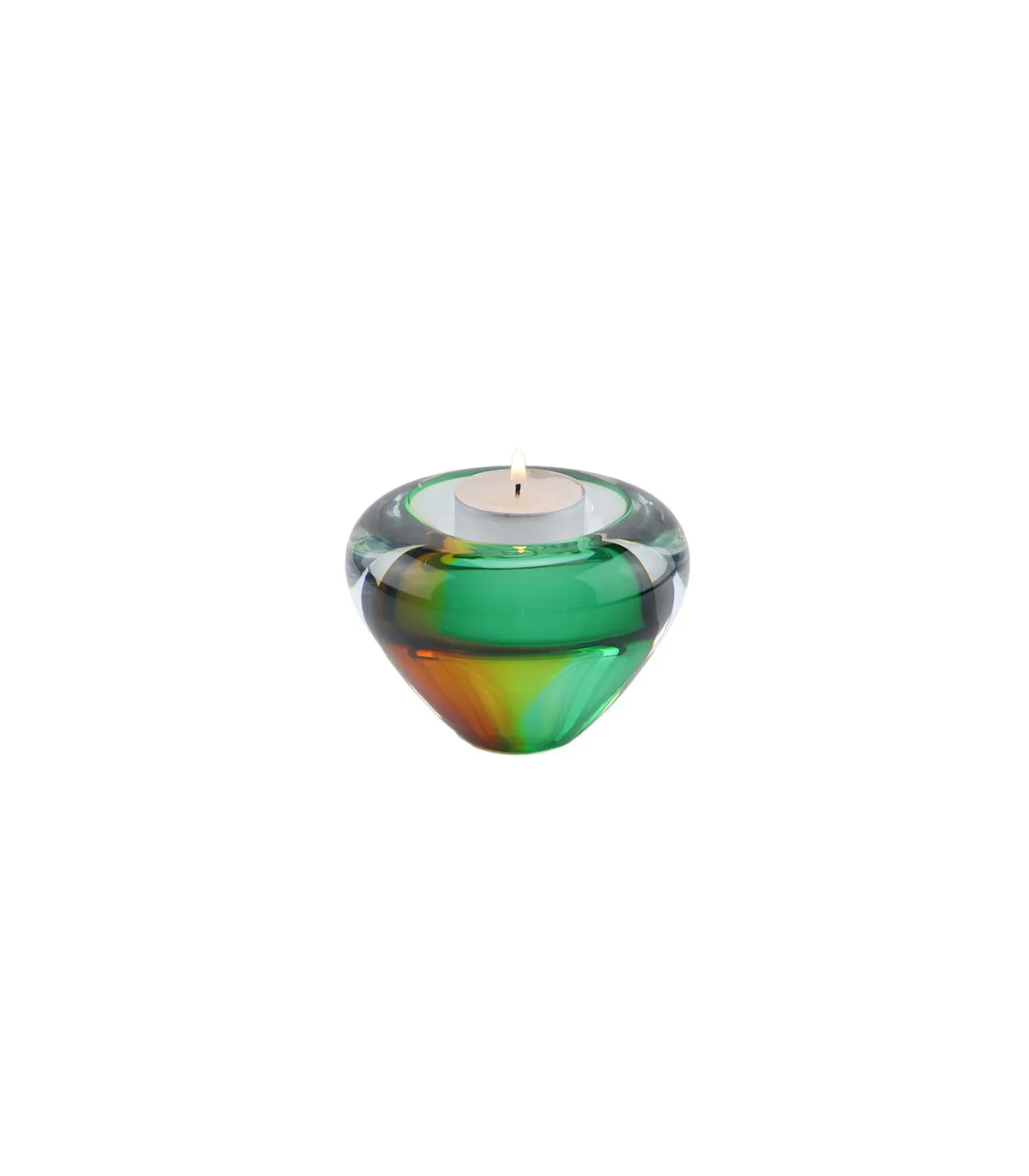 Glazen Memorie Kaarsenhouder Tealight Groen Blauw