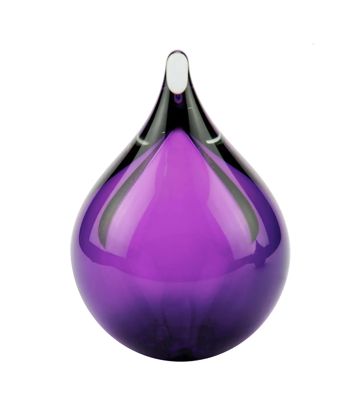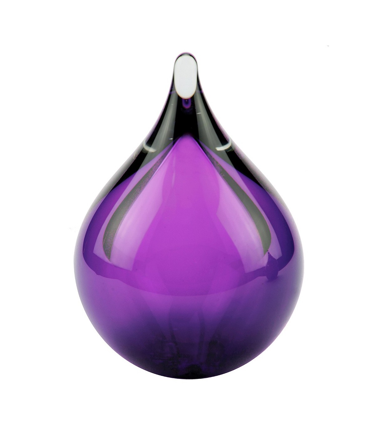 Deze mooie kristalglazen urn heeft de vorm van een sierlijke druppel met een krachtige paarse kern. In de kern bevindt zich een holle ruimte waar een gedeelte van het as in bewaard kan worden. Dit as-reservoir wordt door middel van een zelf-hechtende sluitplaat afgesloten.