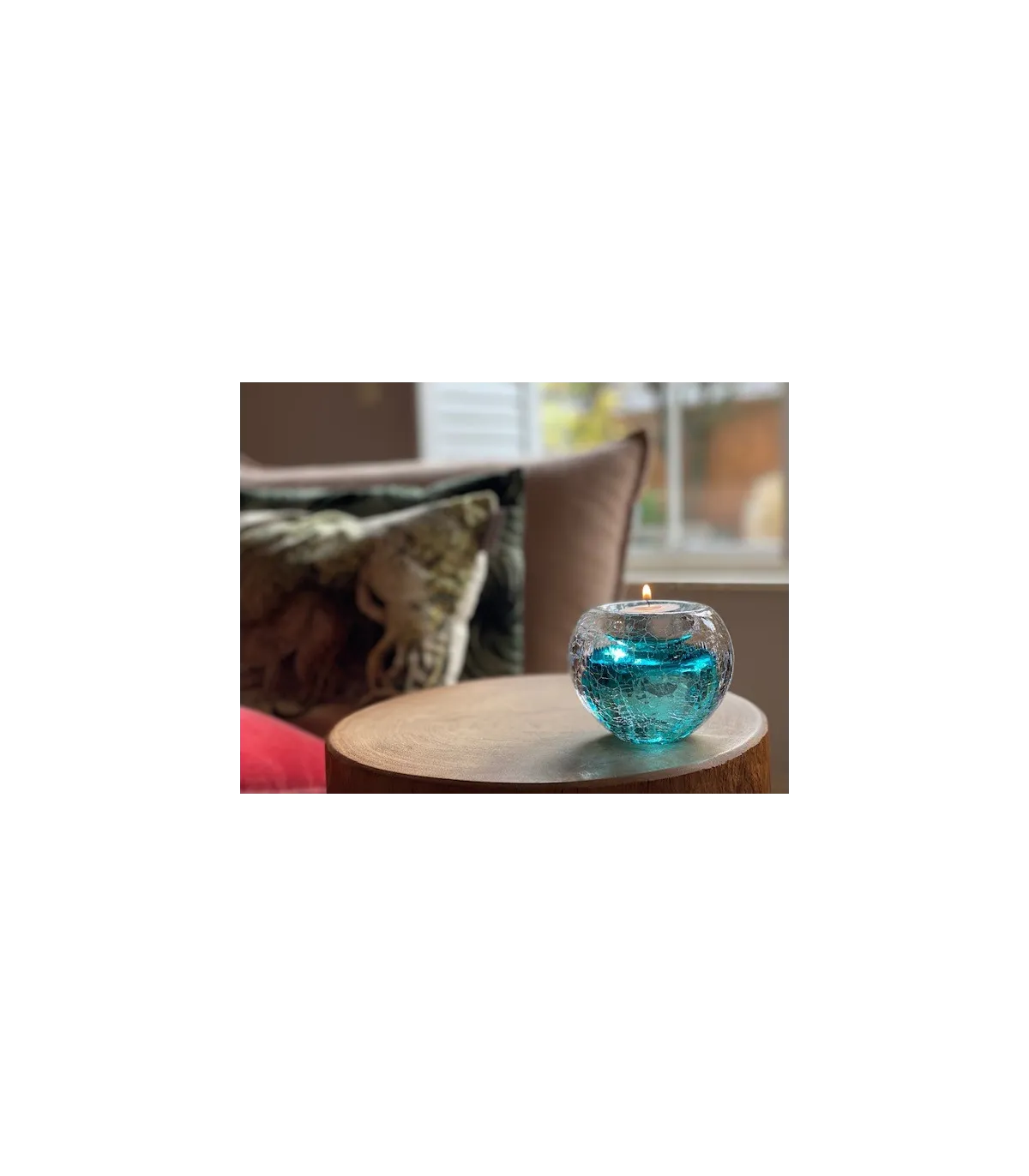 Deze mooie kristalglazen kaarsenhouder bevat een krachtige Tiffany-blauwe kern. In de kern bevindt zich een holle ruimte waar een gedeelte van het as in bewaard kan worden. Dit as-reservoir wordt door middel van een zelf-hechtende sluitplaat afgesloten.