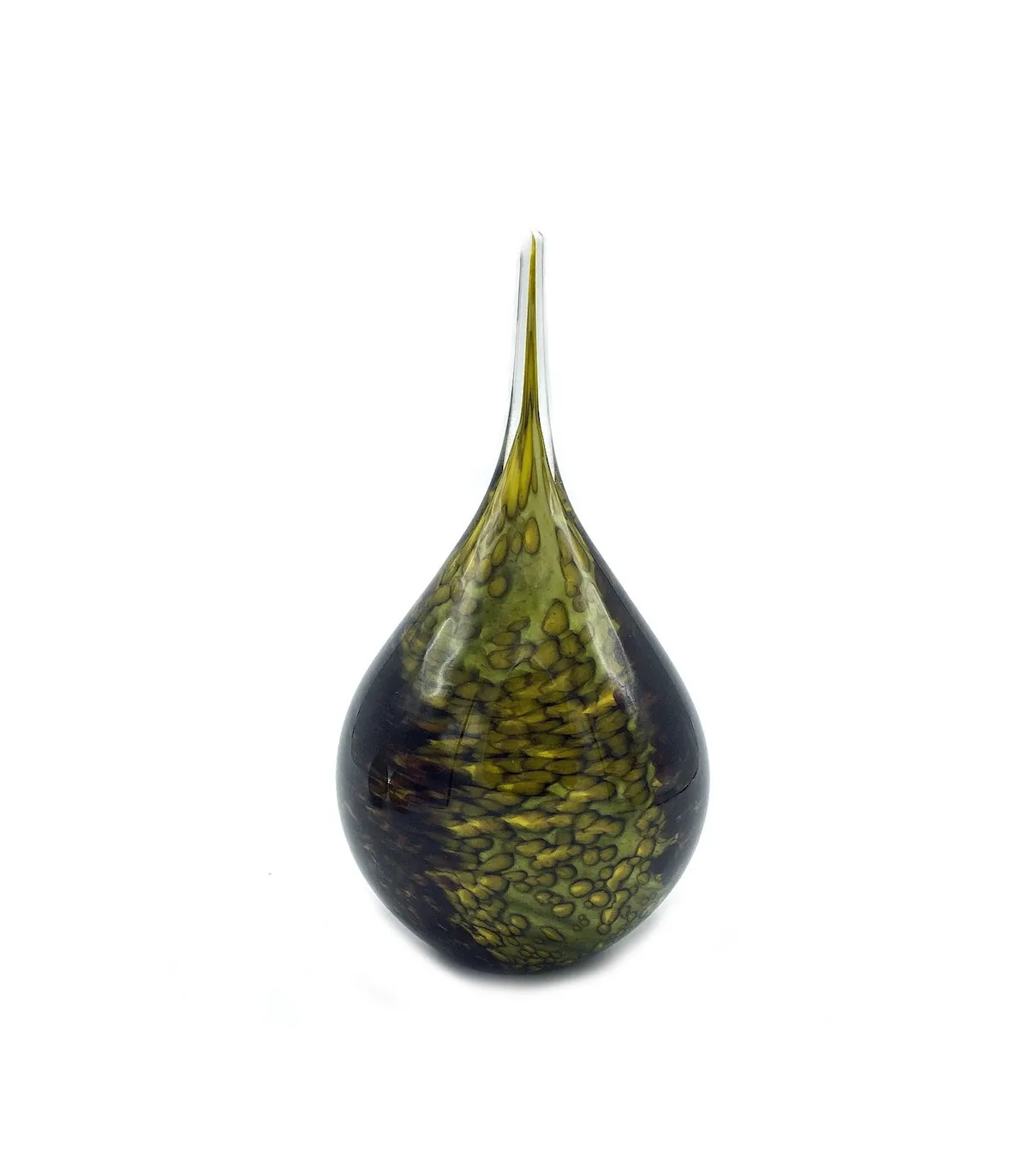 Glazen Memorie Urn Druppel Medium Goudgroen
