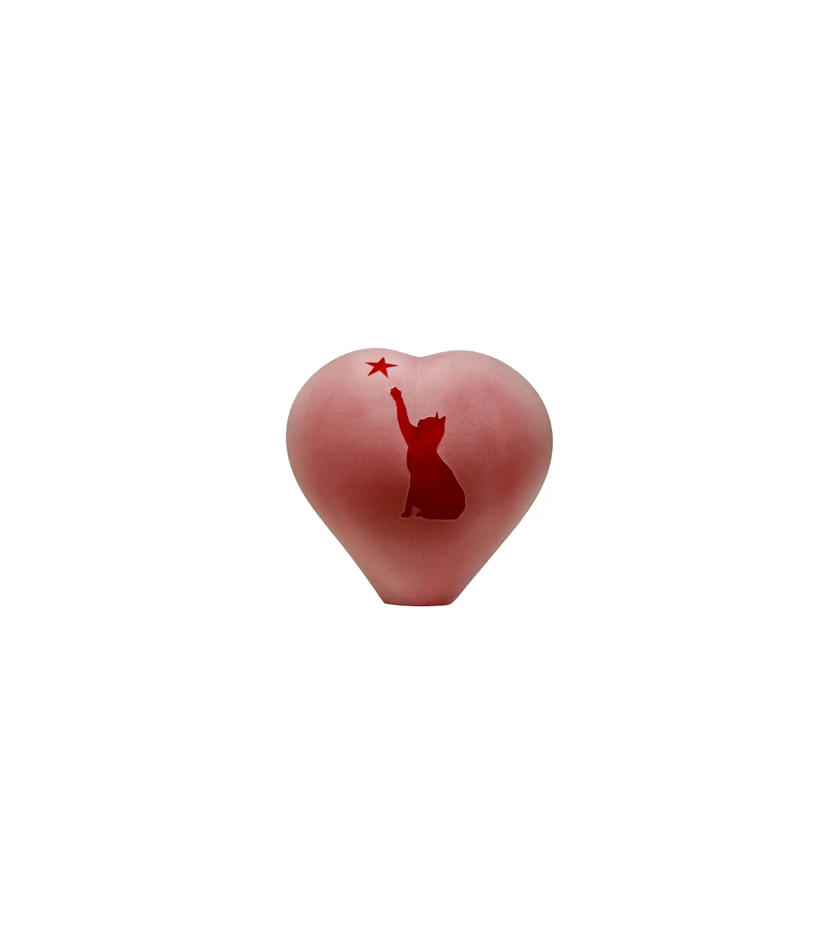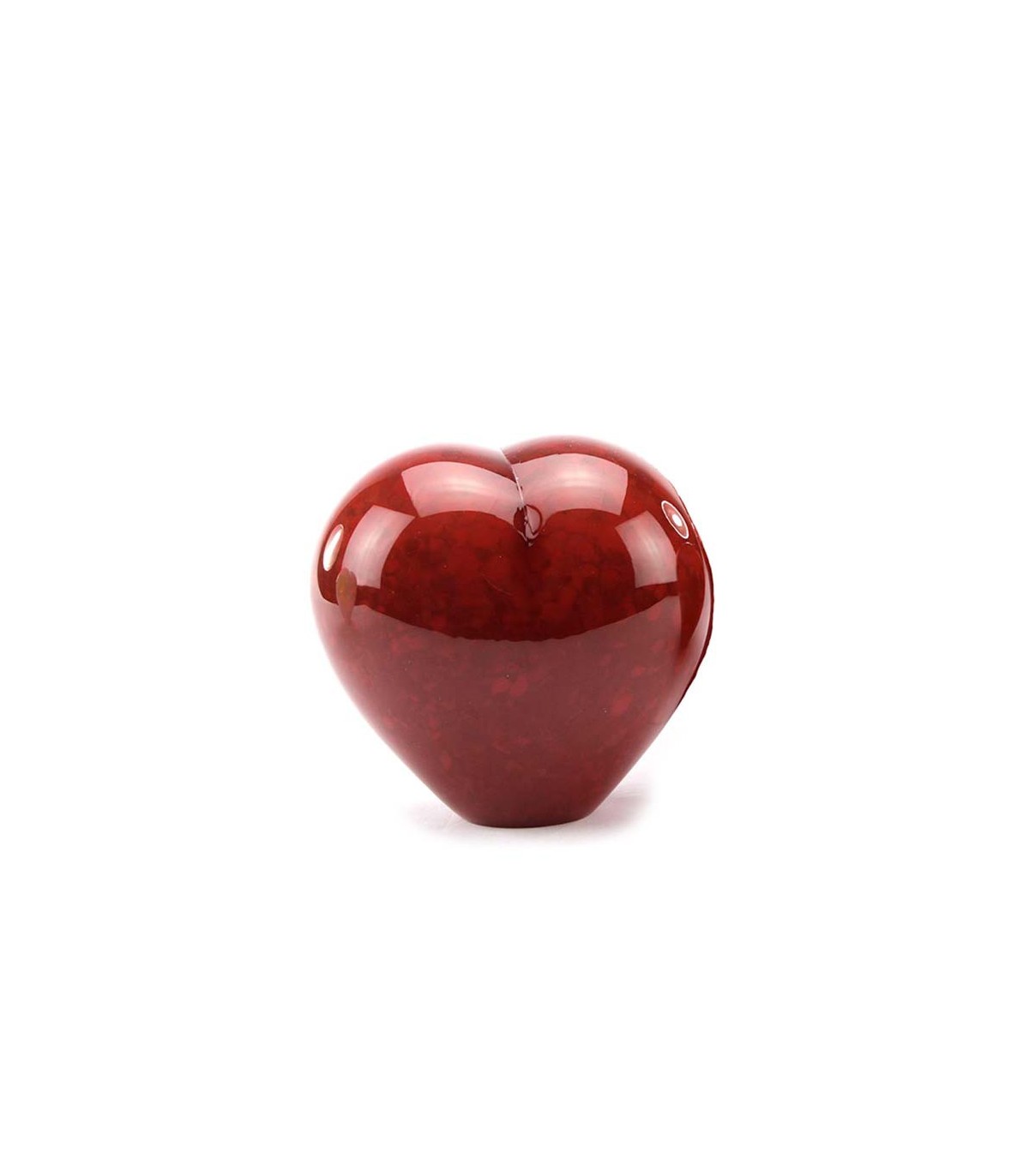 Deze mooie kristalglazen urn heeft de vorm van een "vol" hart. In de kern bevindt zich een holle ruimte waar een gedeelte van het as in bewaard kan worden. Dit as-reservoir wordt door middel van een zelf-hechtende sluitplaat afgesloten.