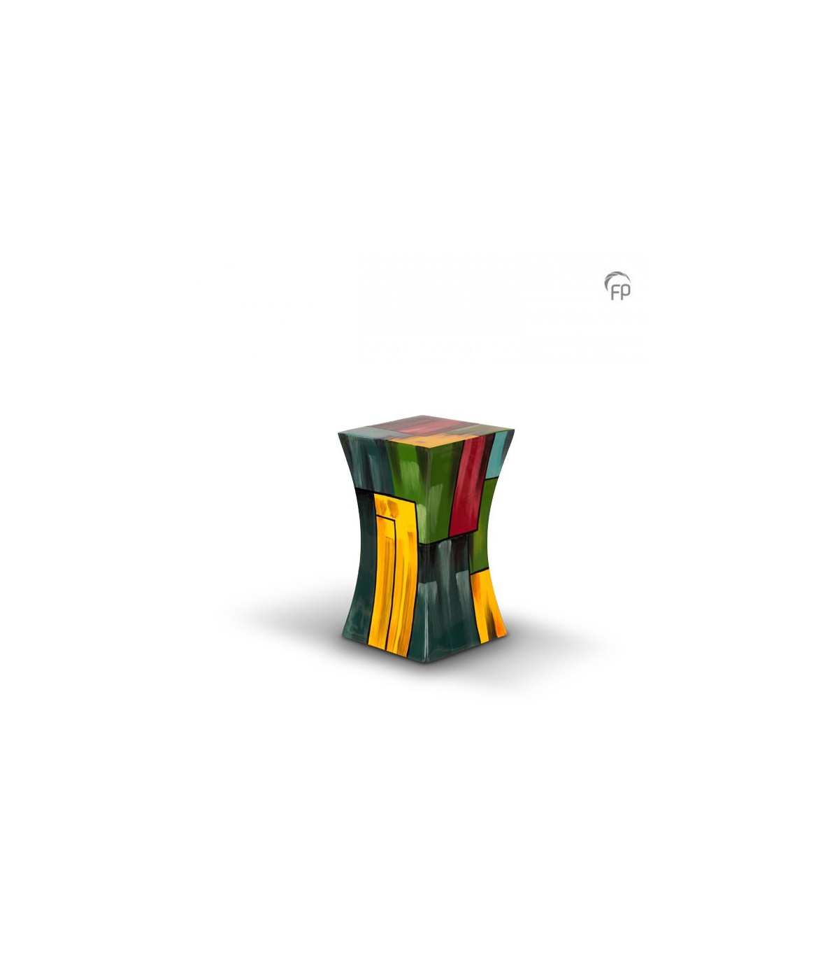 Deze kleine kleurrijke glasfiber urn is volledig met de hand geschilderd en gemaakt van ultralicht glasfiber.