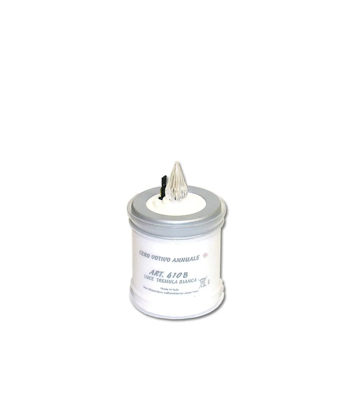 Electrisch waterbestendig knipperend jaarlichtje bestemd voor in een graflantaarn. Het knipperend jaarlichtje geeft minimaal 1 jaar een knipperend wit licht. De accu is niet vervangbaar.