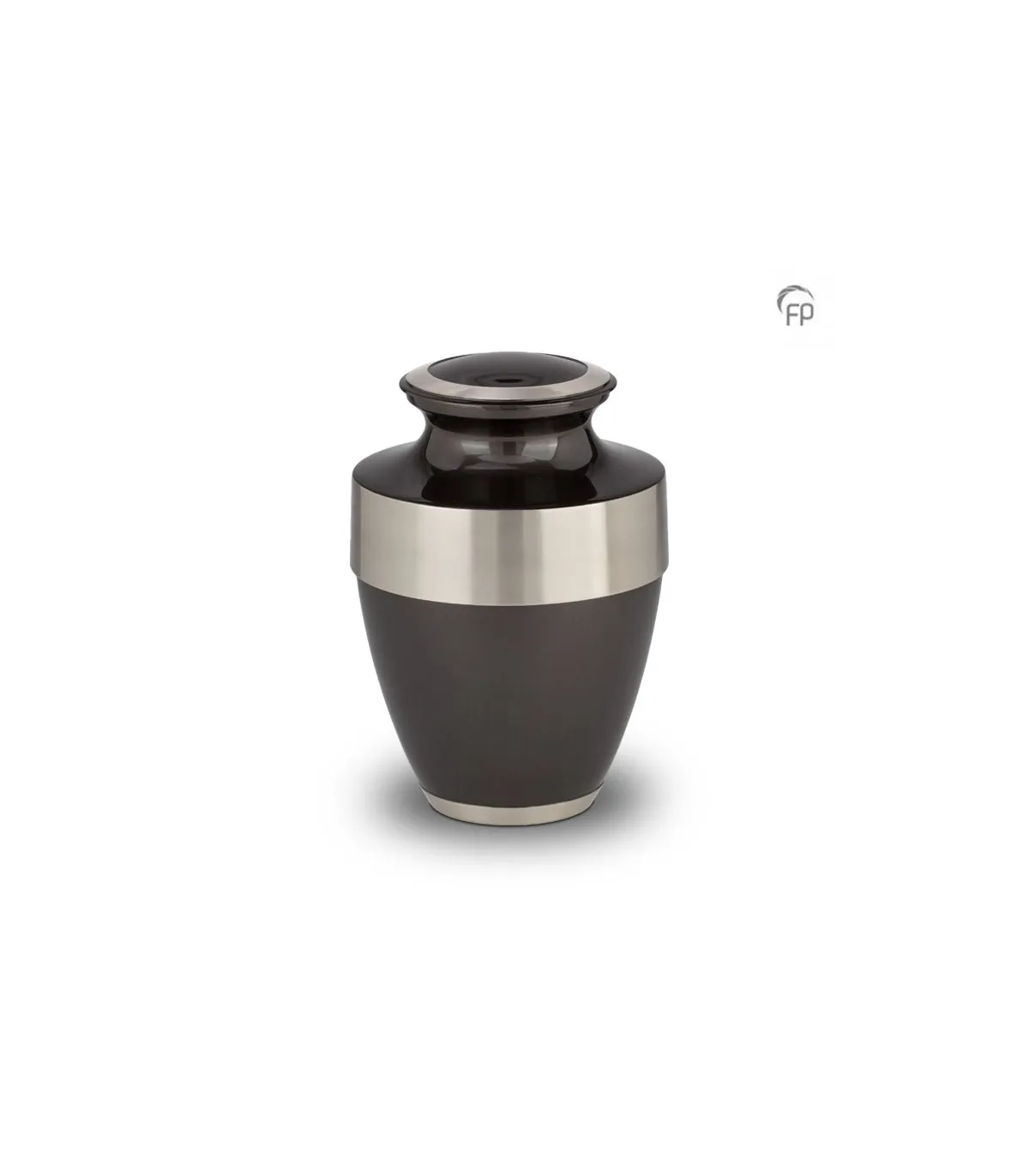 Metalen Mini Urn Zwart met Zilverkleurige Banden