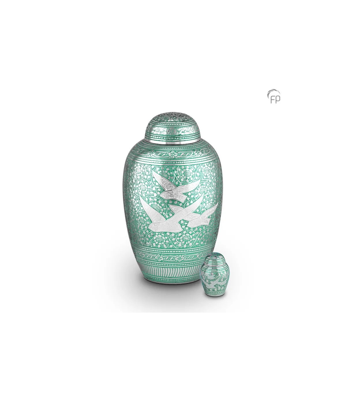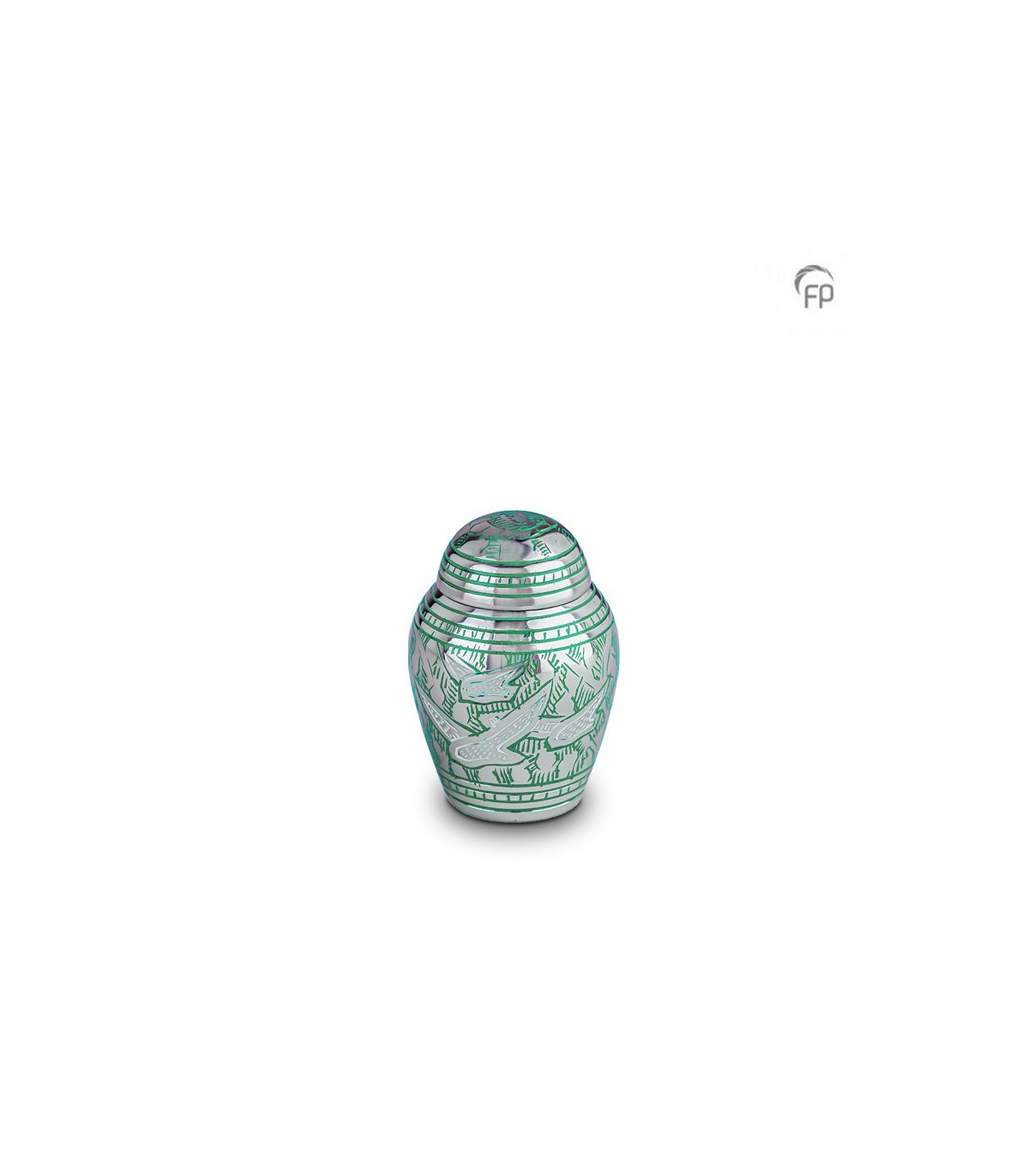 Deze mini urn is geheel met de hand vervaardigd uit hoogwaardige materialen als messing en aluminium. De urn is voorzien van een sierlijke vogel decoratie met daaroverheen een speciale laklaag die het product een mooie glans geeft en langdurig beschermt.