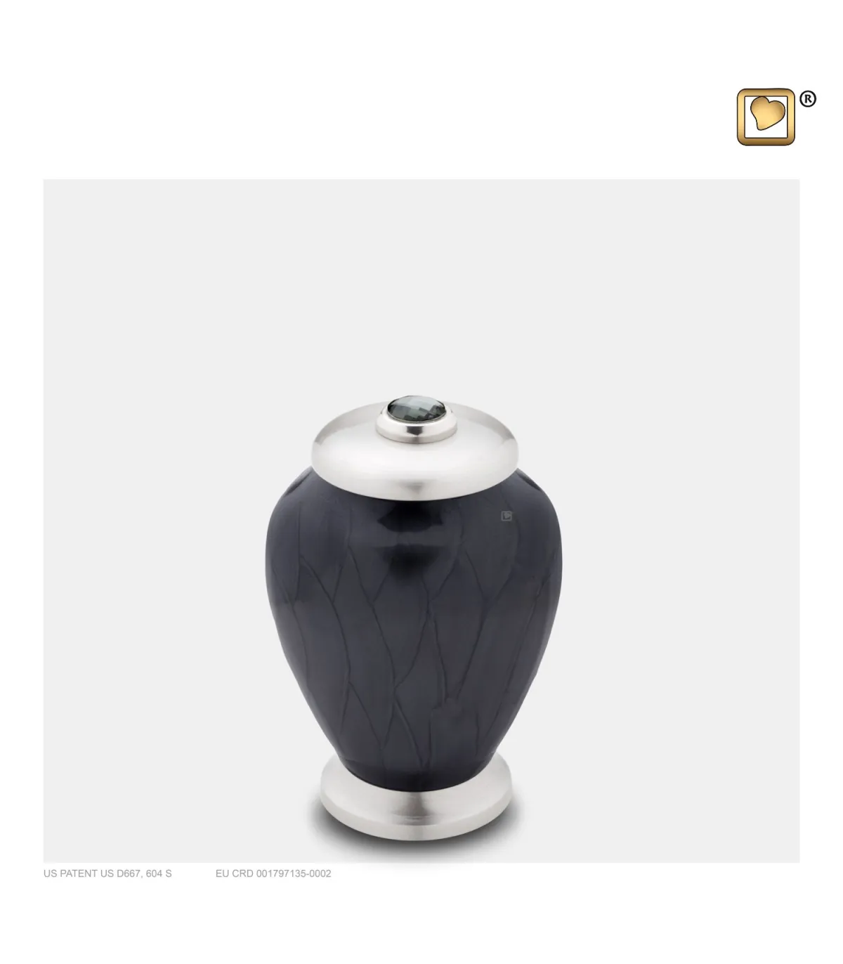 Deze messing mini urn behoort tot de LoveUrns® collectie. De urn is voorzien van GlossCoat™. Op de deksel is een Swarovski kristal aanwezig.