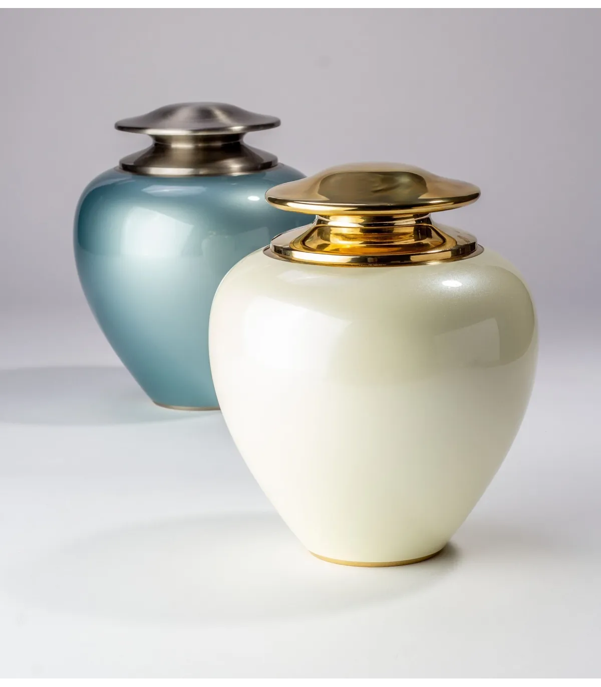 Deze grote metalen urn is geheel met de hand vervaardigd uit hoogwaardige materialen, zoals messing en aluminium. De urn is voorzien van een schitterende parelmoer finishing.