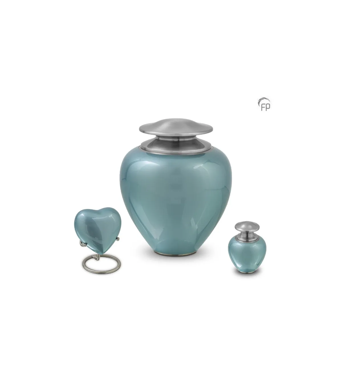 Deze metalen mini hart urn is geheel met de hand vervaardigd uit hoogwaardige materialen, zoals messing en aluminium. De urn is voorzien van een schitterende blauwe parelmoer finishing.