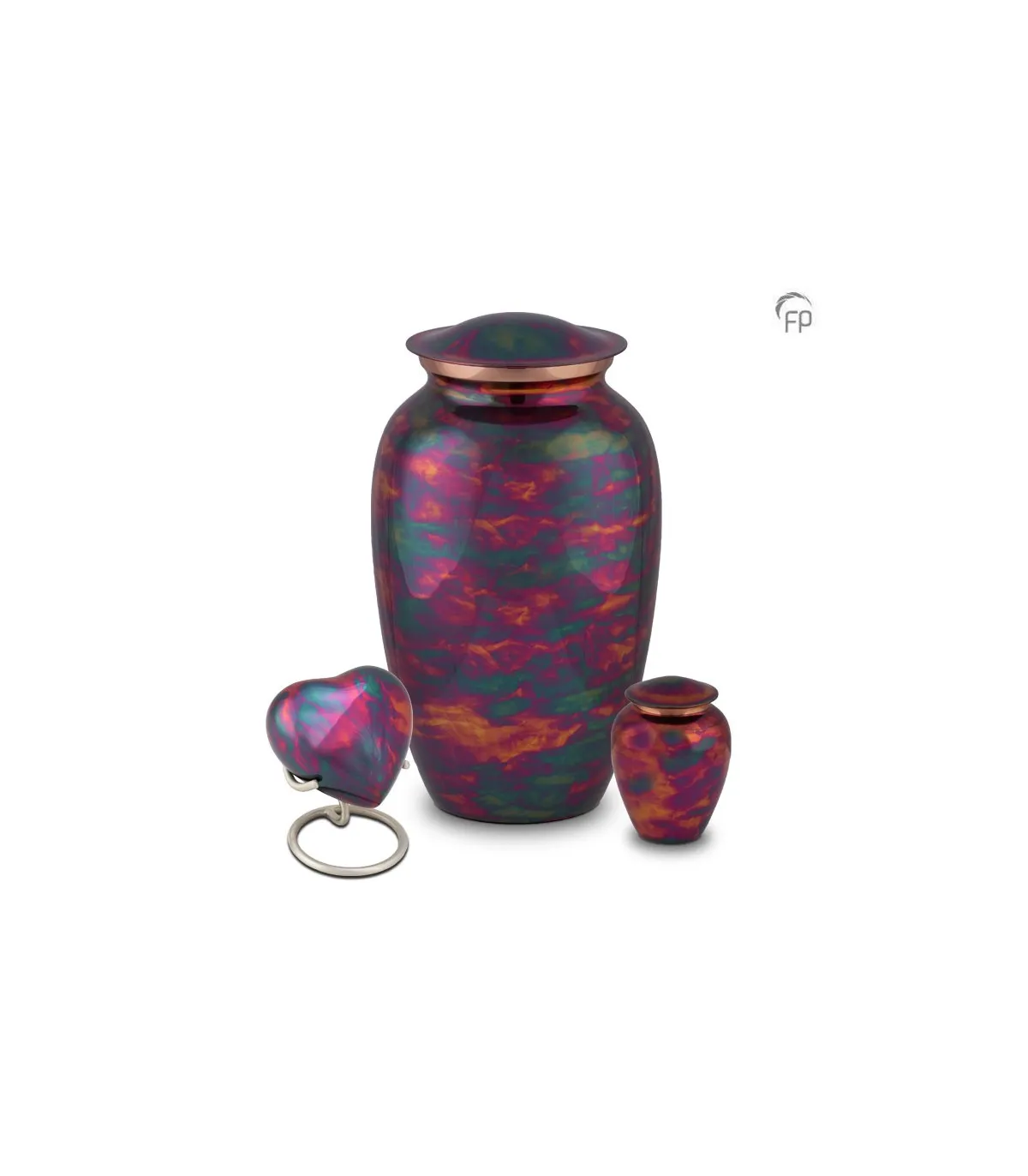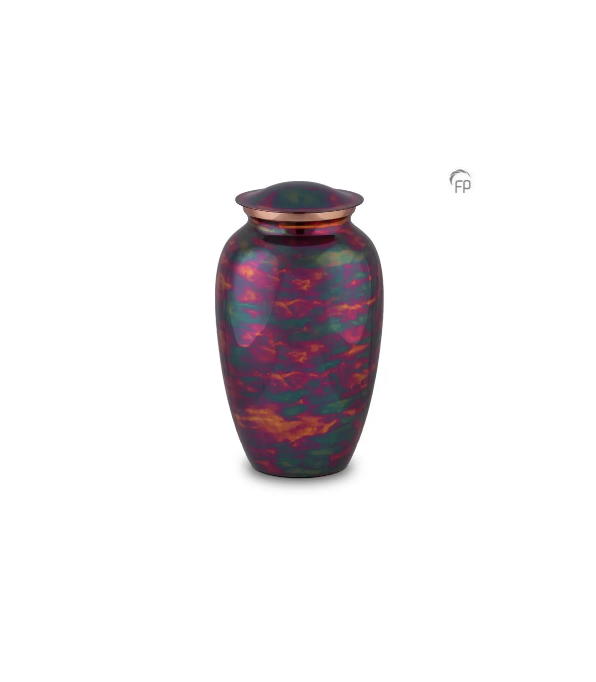 Deze grote metalen urn is geheel met de hand vervaardigd uit hoogwaardige materialen, zoals messing en aluminium. De urn is voorzien van een kopermat look. Door de Raku-techniek, die gebruikt wordt bij het produceren van deze urn, ontstaan bijzondere kleurovergangen en kleurcombinaties. Elke urn is hierdoor uniek getekend.