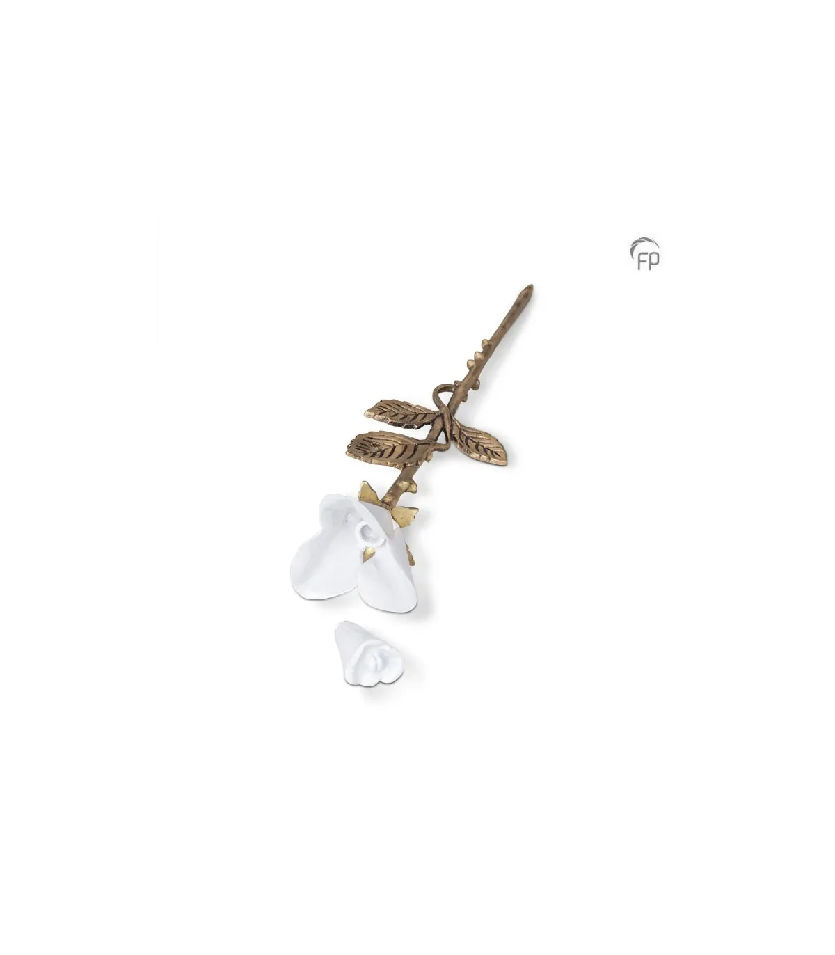 - Bronskleurige steel met witte roos