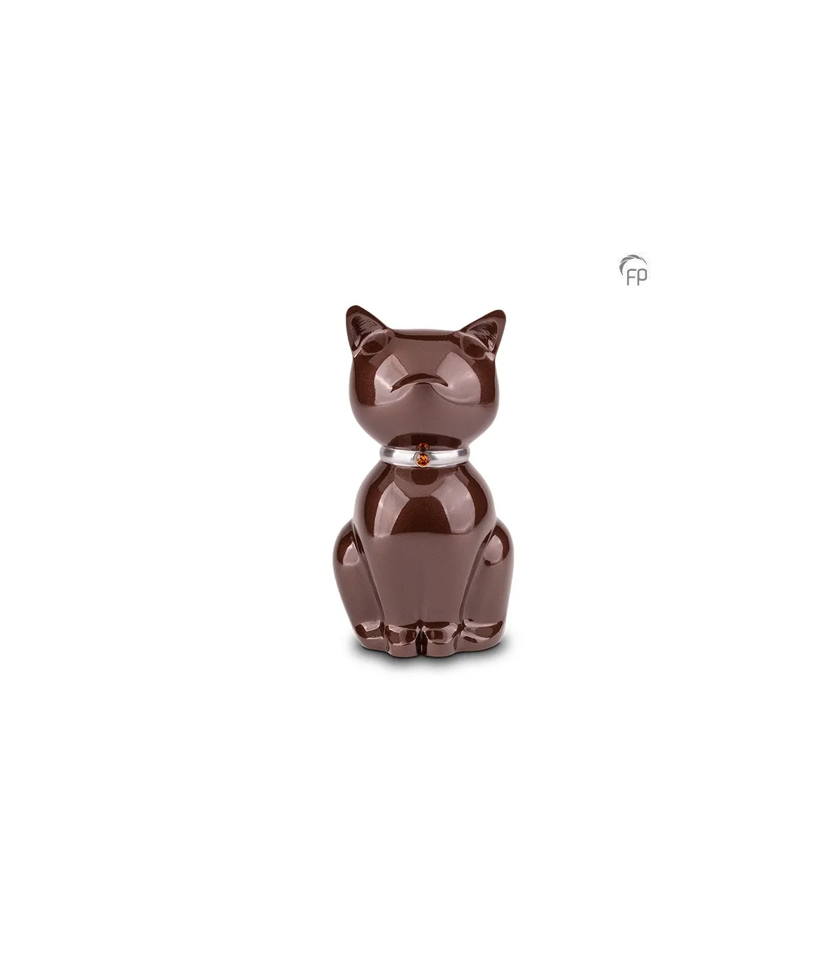 Metalen Dierenurn Nuna Kat Wit met Steentje