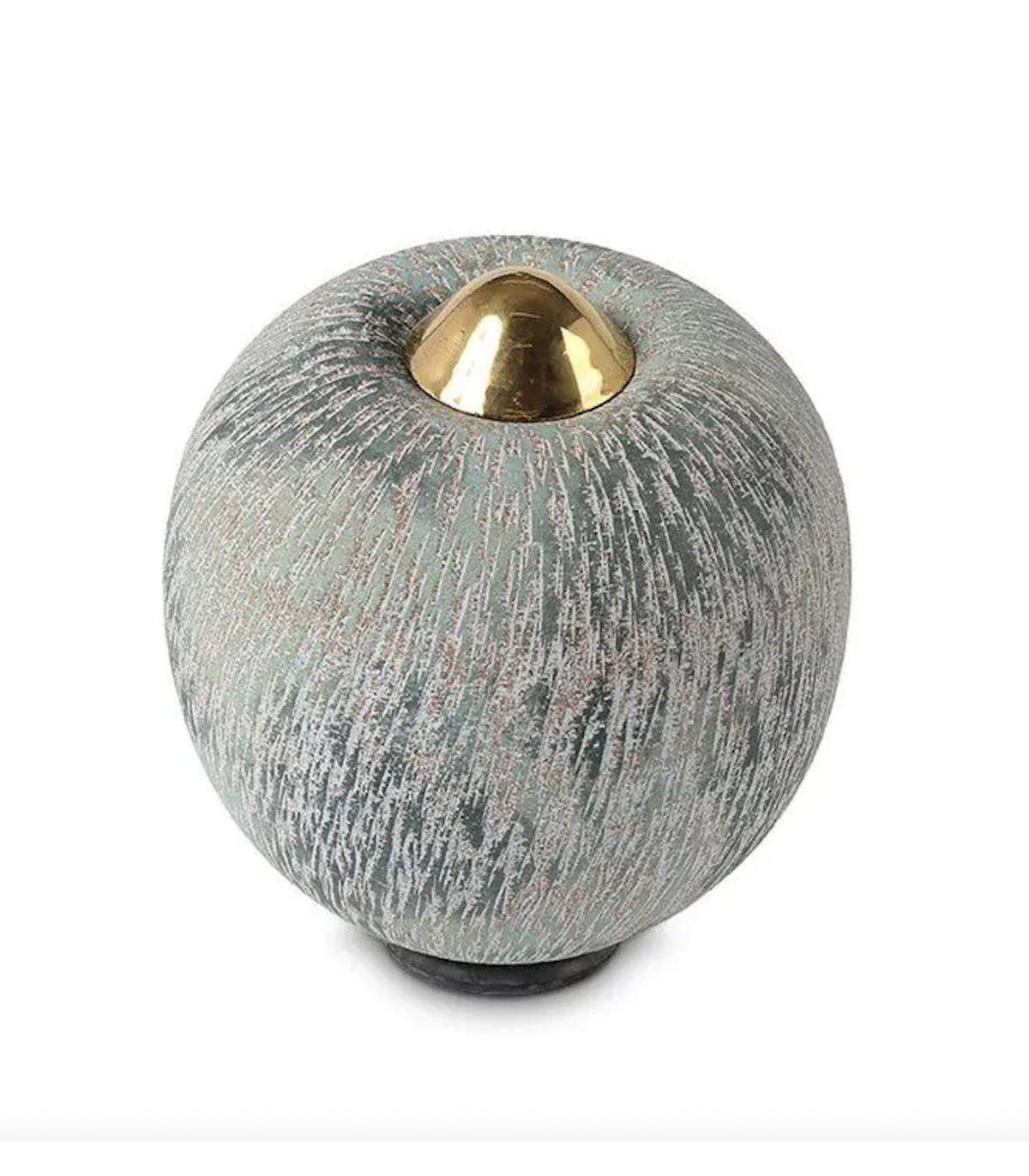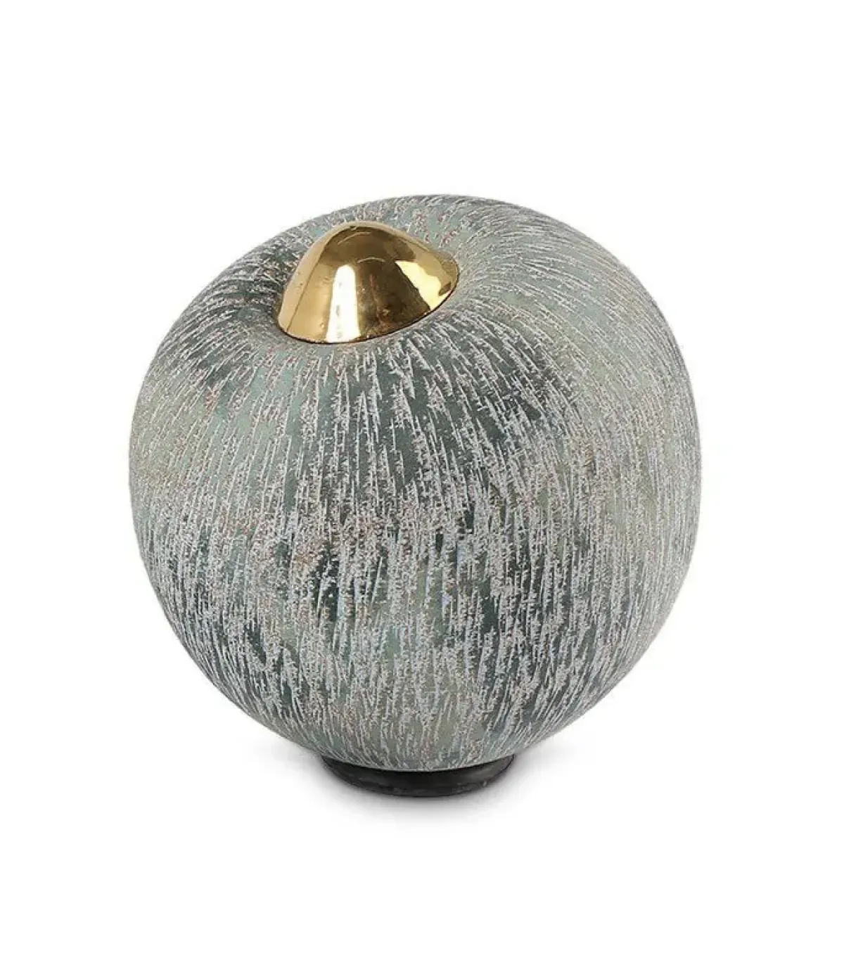 Deze grote handgemaakte keramische urn is vervaardigd uit speciaal geselecteerde ingrediënten die worden gemixt tot een keramische massa. De urn heeft een kleurenschakering van turquoise-blauwe tinten met zachtgroen. Om het as-reservoir van de urn af te sluiten wordt een keramische gouden deksel gebruikt.