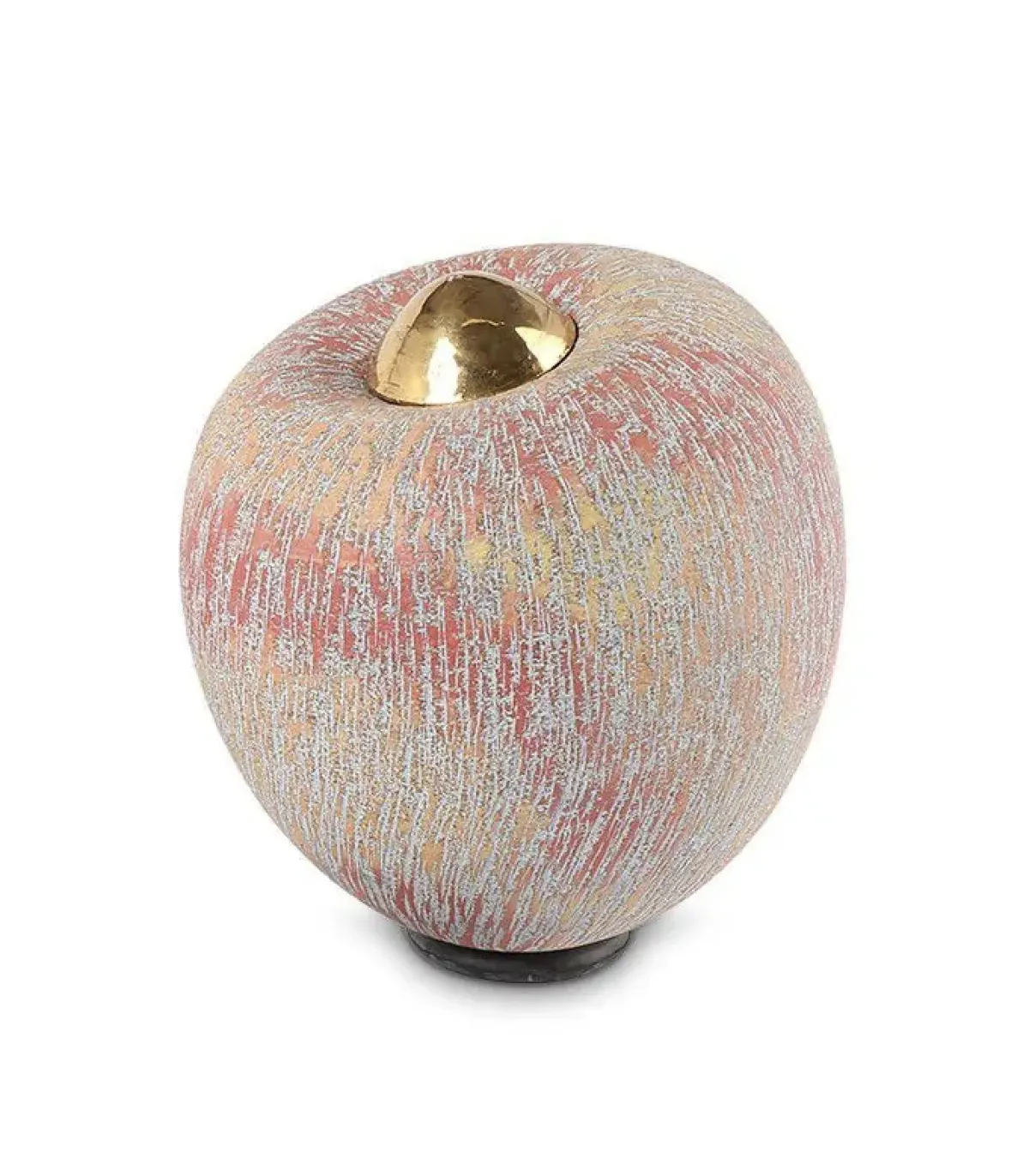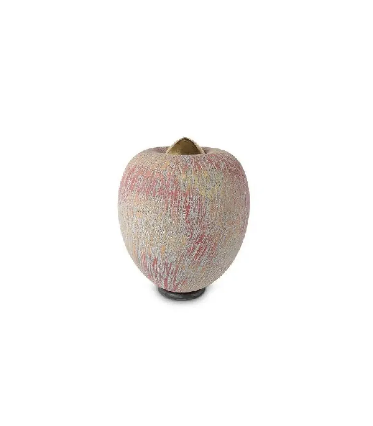 Deze grote handgemaakte keramische urn is vervaardigd uit speciaal geselecteerde ingrediënten die worden gemixt tot een keramische massa. De urn heeft een kleurenschakering van warme oranje, rode tinten met een vleugje geel. Om het as-reservoir van de urn af te sluiten wordt een keramische gouden deksel gebruikt.