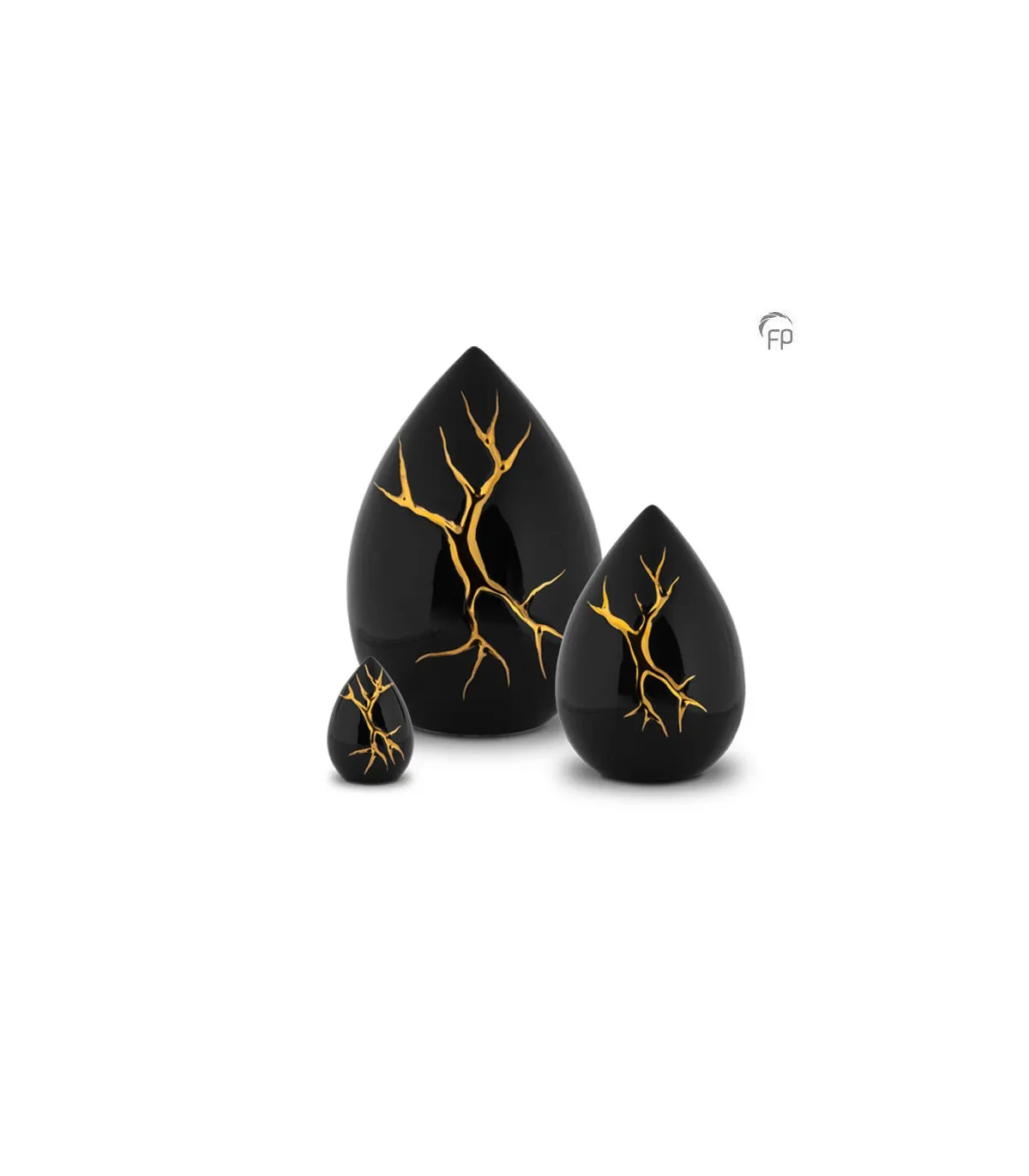Kintsugi is een Japanse kunst techniek waarbij gebroken keramiek wordt hersteld met lak gemengd met goudkleur, zilverkleur of platinakleur. De filosofie achter deze collectie urnen draait om het benadrukken van scheuren en breuken, in plaats van deze te verbergen. De gouden lijnen accentueren de breuken en houden de herinneringen aan een dierbare levend.